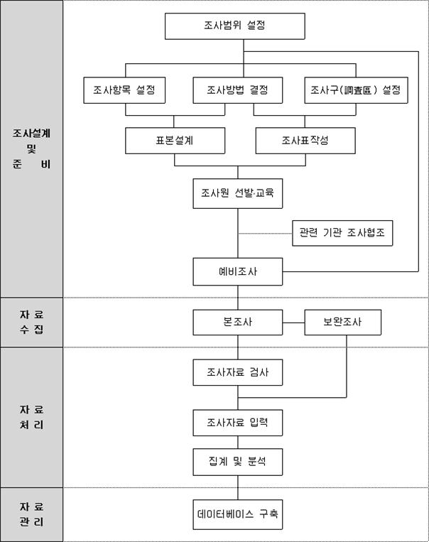 - 조사범위 설정, 조사항목 설정, 조사방법 결정, 조사구 설정