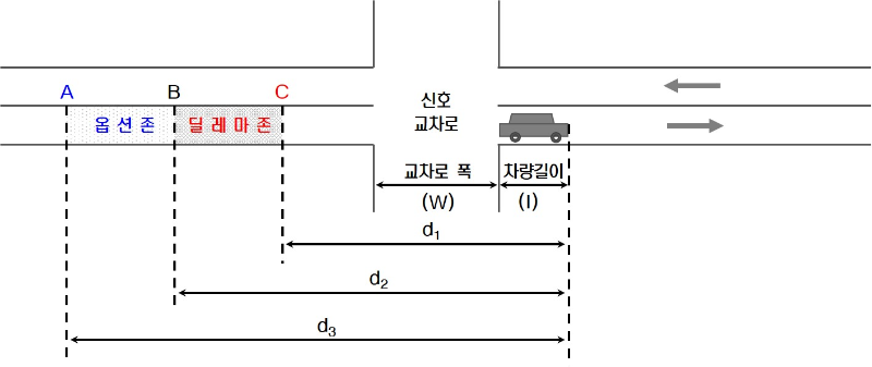 - 딜레마존은 실제 황색시간이 적정 황색시간보다 짧아서 발생하는 구간