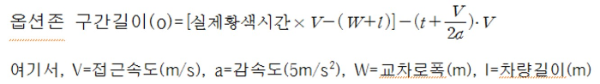 - 옵션존은 실제 황색시간이 적정 황색시간보다 길어서 발생하는 구간