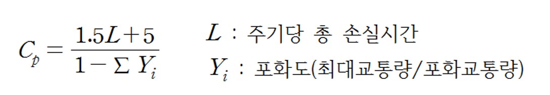 - 일반적으로 주기길이는 교차로의 포화도가 높아지면 길어지고, 포화도가 낮아지면 짧아짐