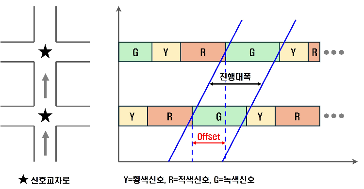 ※ Offset : 연동 신호운영에서 상류부 녹색신호 시작시간과 하류부 녹색신호 시작시간간 간격