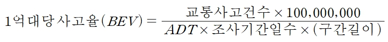 • 사고건수법을 개선한 것으로 통과 교통량에 대한 상대적인 사고발생률을 고려하여 선정