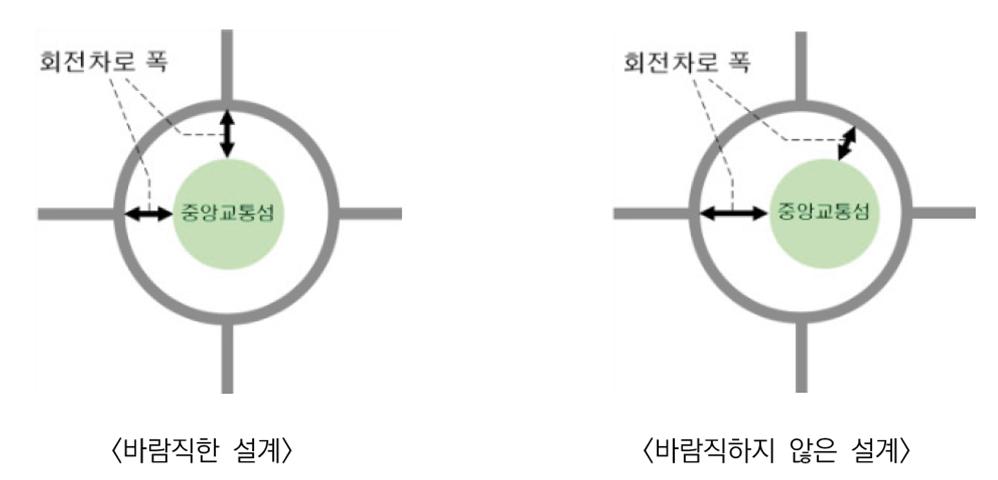 - 회전차로 폭은 동일한 폭을 유지하도록 설게
