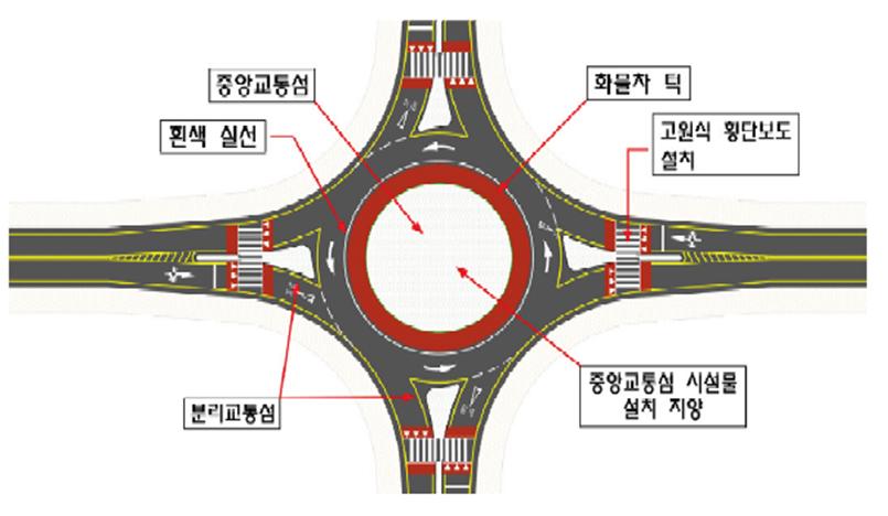 - 중앙교통섬의 형태는 원칙적으로 원형으로 설계