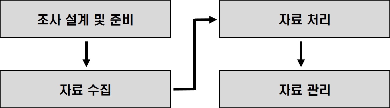 ① 조사설계 및 준비 : 조사설정 및 방법 결정, 예비조사